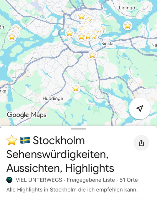 Stockholm Sehenswürdigkeiten Karte – 100+ Highlights in Google Maps mit 1 Klick
