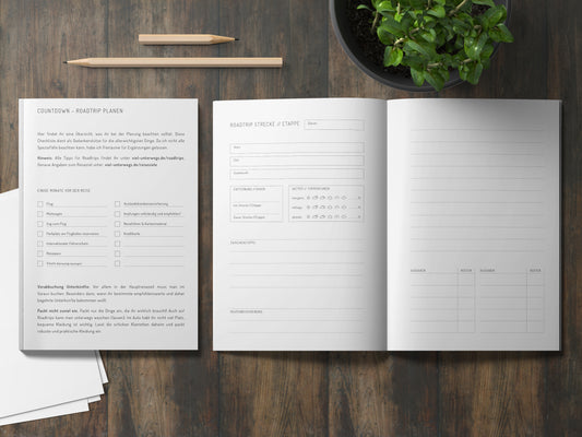 Bundle: Reisetagebuch Roadtrips für 21 Tage ("Viel-Schreiber") & Reisenotizbuch